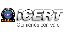 Logotipo con “iCERT” en texto plateado, una insignia que dice “Certificación Garantía”, cuatro estrellas y el texto “Compra Online Segura” debajo.